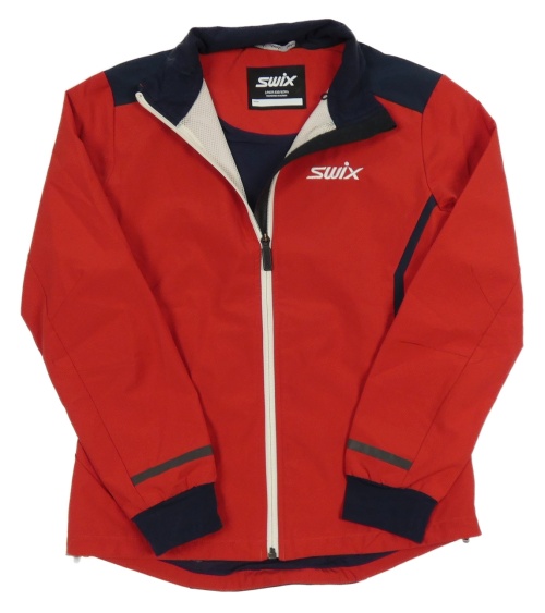 Červeno-tmavomodrá šušťáková bunda s nápisom