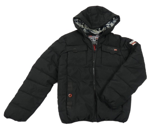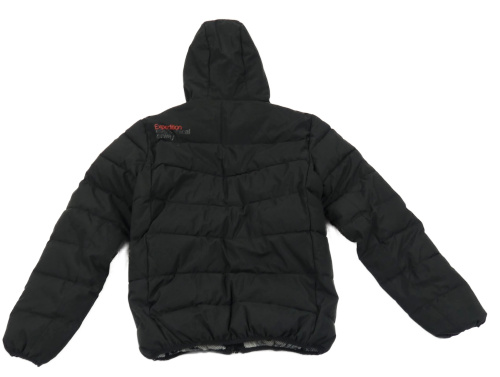 Čierna šušťáková zimná bunda s logom a kapucňou