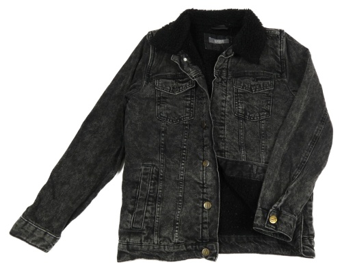 Čierna šisrovaná rifľová zateplená bunda s golierikom LC WaIKIKI
