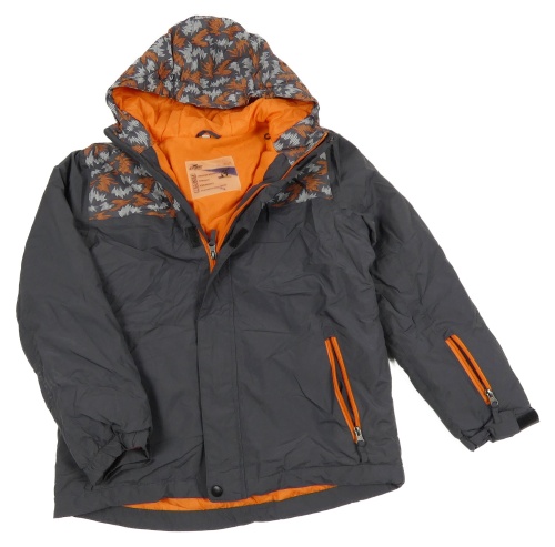 Tmavosivá šušťáková funkčná zimná lyžiarska bunda so vzorom a kapucňou crane