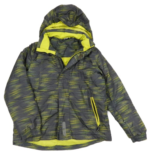 Sivo-žlto-zelená vzorovaná šušťáková zimná funkčná bunda s kapucňou Crivit