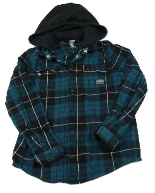 Petrolejovo-čierna kockovaná košeľová bunda s kapucňou F&F
