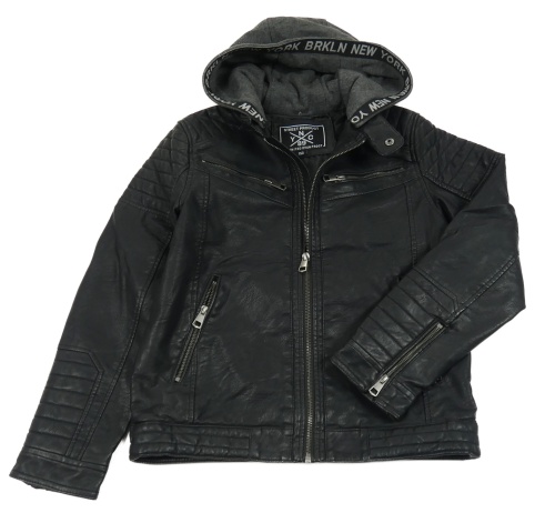 Čierna koženková bunda s teplákovou kapucňou C&A