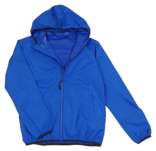 Kobaltově modrá šušťáková vetrovka s kapucňou