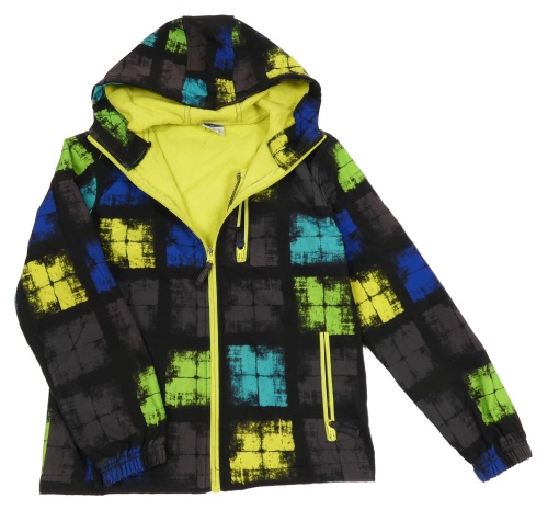Čierno-sivo-modro-žltá kockovaná softshellová bunda s kapucňou Yigga