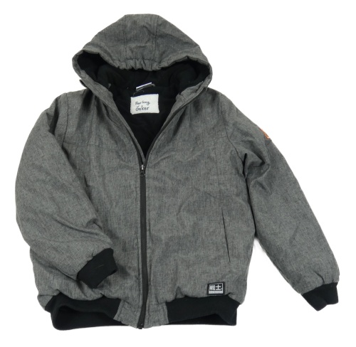 Sivo-čierna melírovaná šušťáková zimná bunda s kapucňou