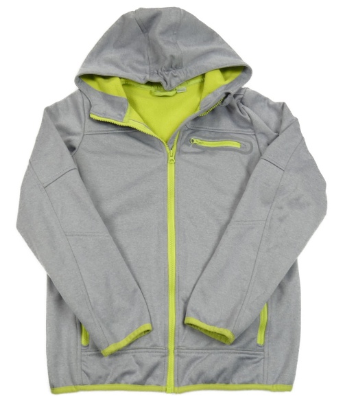 Sivá melírovaná softshellová bunda s neónovým zipsom a kapucňou Crivit