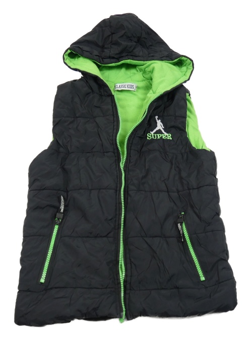 Čierno-zelená šušťáková zateplená vesta s nápisom a kapucňou