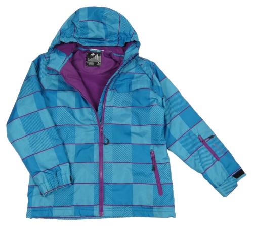 Modrá kockovaná šušťáková zimná bunda s kapucňou
