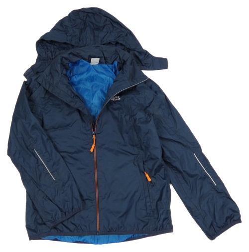 Tmavomodrá šušťáková jarná funkčná bunda s ukrývací kapucňou Crane