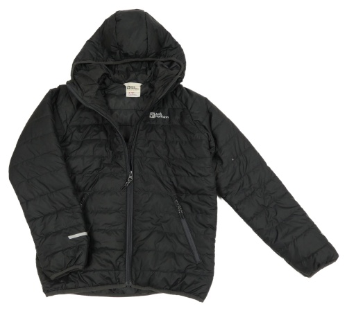 Čierna šušťáková zateplená prešívaná bunda s kapucňou Jack Wolfskin