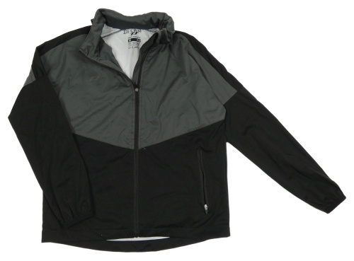 Tmavošedo-čierna šušťáková bunda s ukrývací kapucňou