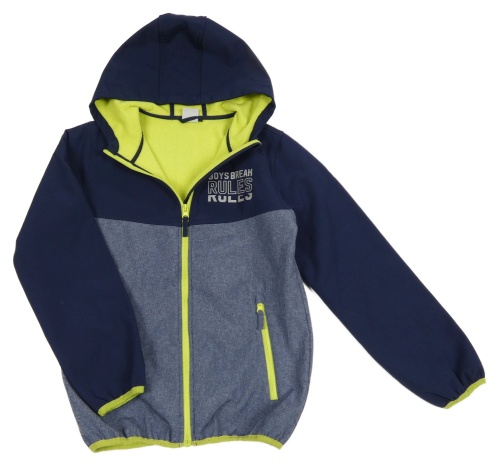 Tmavomodro-melírovaná softshellová bunda s nápisom a kapucňou Y.F.K.