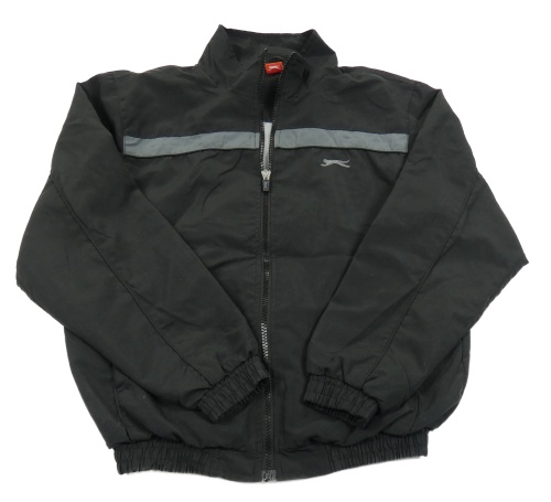 Čierno-tmavosivá šušťáková jarná športová bunda s logom Slazenger
