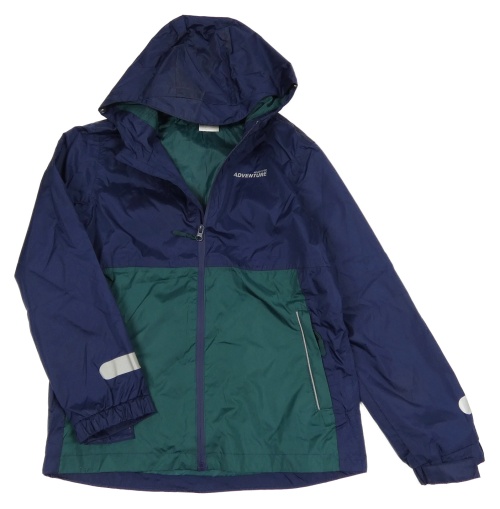 Tmavomodro-zelená šušťáková funkčná bunda s nápisom a kapucňou Crane