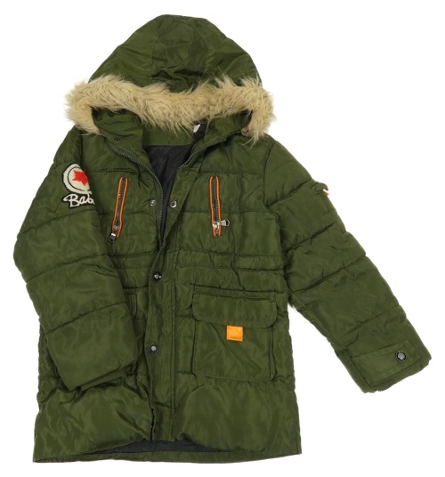 Khaki šušťáková prešívaná zimná bunda s nášivkou a kapucňou