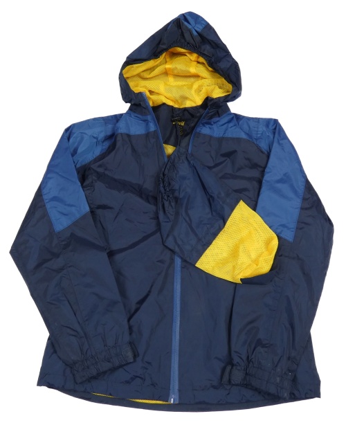 Tmavomodro-žltá šušťáková jarná funkčná bunda s kapucňou Crivit