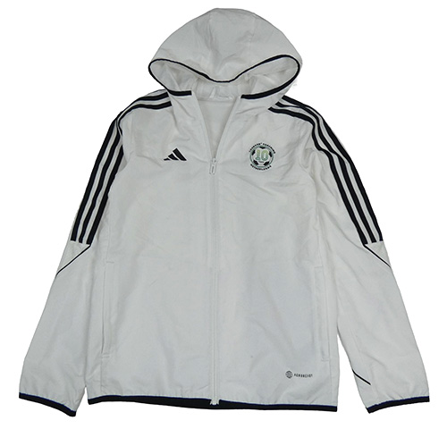 Biela šušťáková športová funkčná bunda s potlačou a kapucňou Adidas