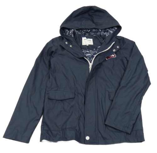 Tmavomodrá nepromokavá jarná bunda s nášivkou a kapucňou Pocopiano