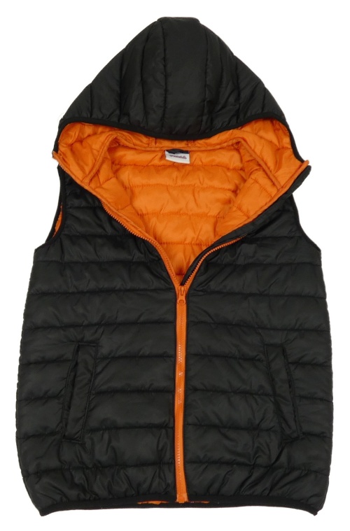 Čierna prešívaná šušťáková zateplená vesta s kapucňou YIGGA