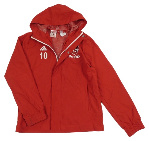 Červená šušťáková nepromokavá bunda s potlačou a kapucňou Adidas