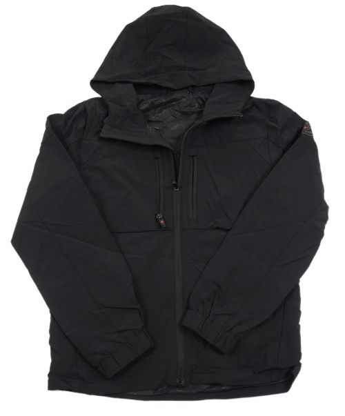 Čierna šušťáková jesenná bunda s nášivkou a kapucňou