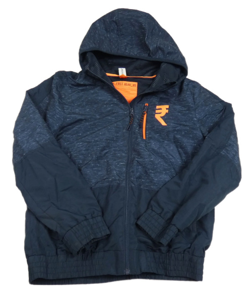 Tmavomodrá melírovaná šušťáková jesenná bunda s potlačou a kapucňou Yigga