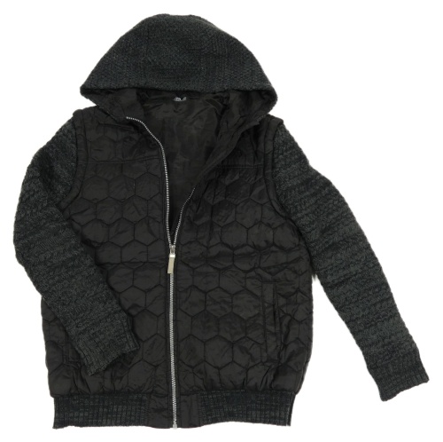 Čierna šušťáková zateplená bunda s pletenymi rukávy a kapucňou George