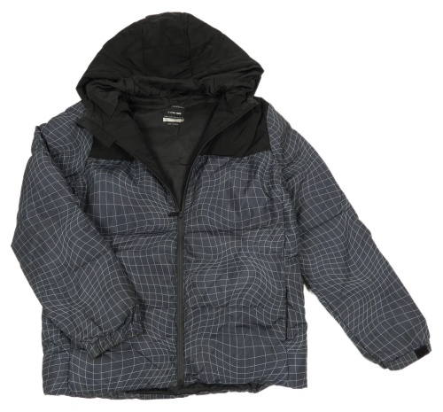Čierno-tmavošedo-kockovaná šušťáková zimná bunda s kapucňou Primark