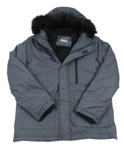 Tmavosivá melírovaná šušťáková zimná bunda s kapucňou s kožešinou PRIMARK
