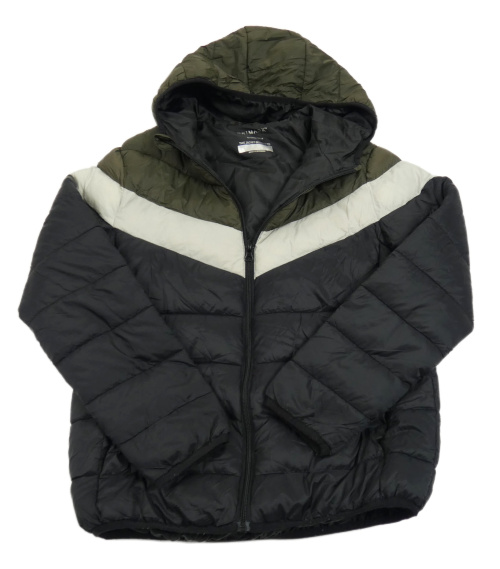 Černo-bílo-tmavokhaki prešívaná šušťáková zateplená bunda s kapucňou PRIMARK