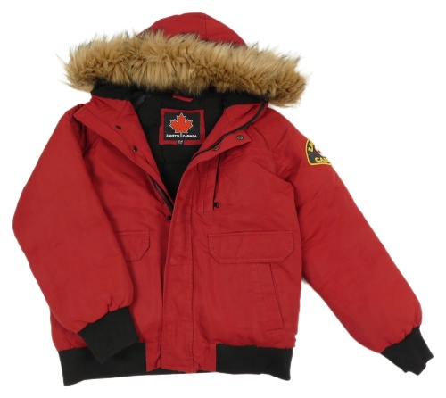 Červená šušťáková zimná bunda s kapucňou s kožešinou Zavetti Canada