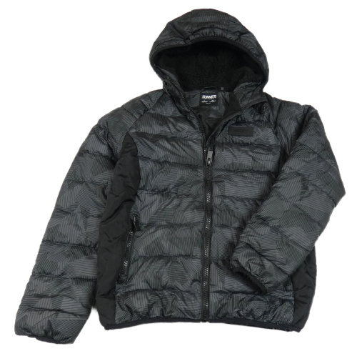 Čierno-tmavosivá vzorovaná šušťáková zimná bunda s kapucňou Sonneti