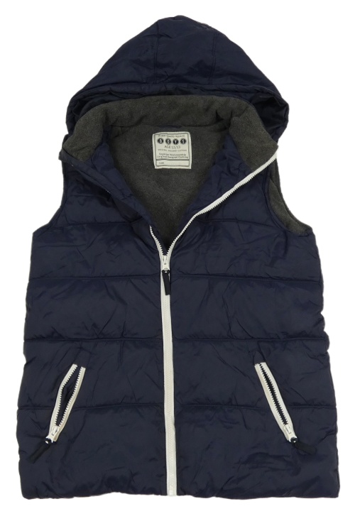 Tmavomodrá šušťáková prešívaná zateplená vesta s kapucňou