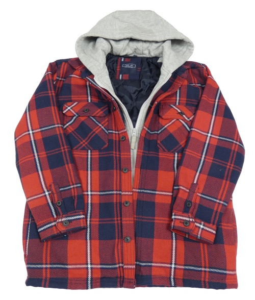 Červeno-tmavomodrá kockovaná zateplená košeľová bunda s teplákovou kapucňou Next