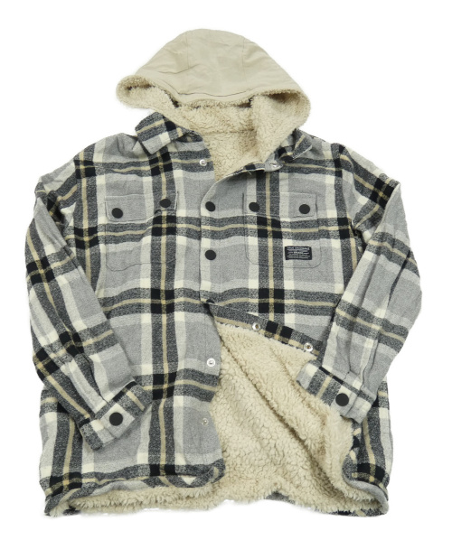 Sivo-čierno-béžová kockovaná zateplená košeľová bunda s kapucňou F&F