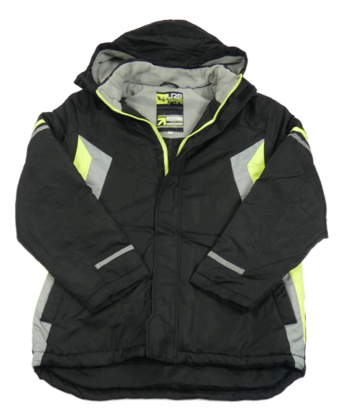 Čierno-sivo-neónově žltá šušťáková zimná bunda s pruhmi a kapucňou Urban