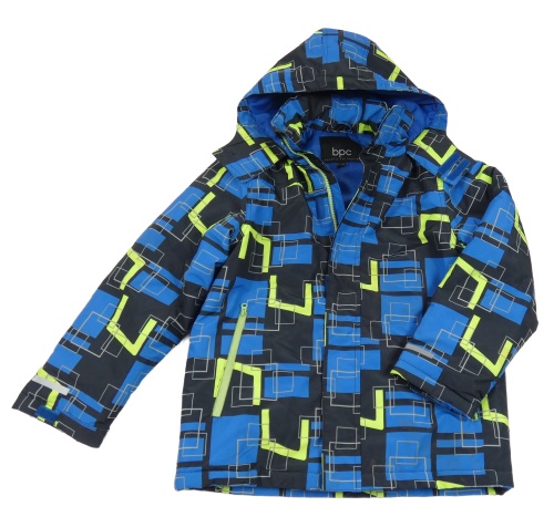 Modro-čierno-zelená vzorovaná šušťáková zimná bunda s kapucňou bpc