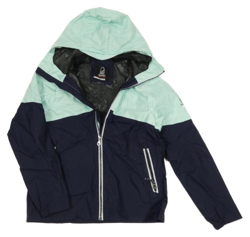 Tmavomodro-mintová šušťáková jarná bunda s kapucňou