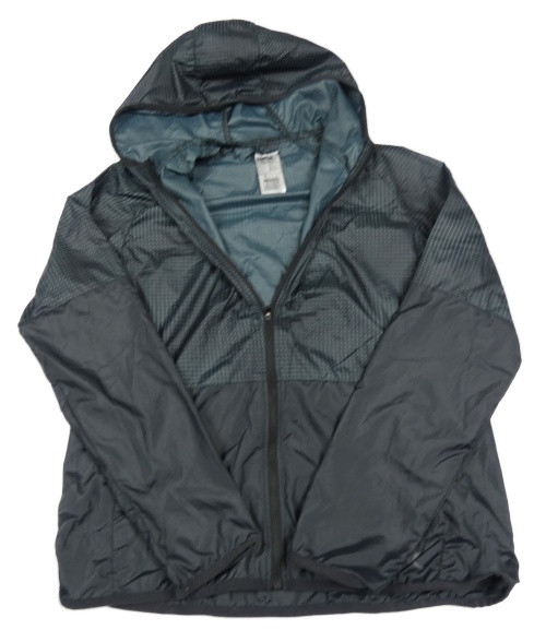 Čierno-zelená vzorovaná šušťáková jarná funkčná bunda Decathlon