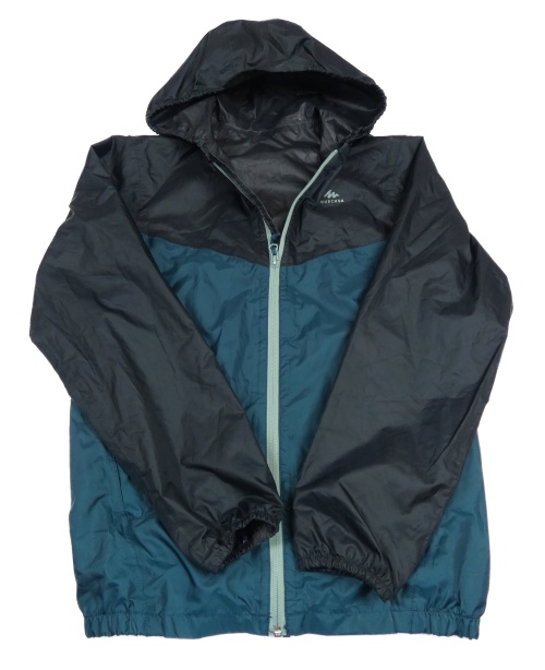 Čierno-petrolejová šušťáková jarná funkčná bunda s kapucňou Quechua