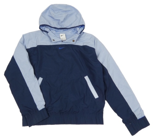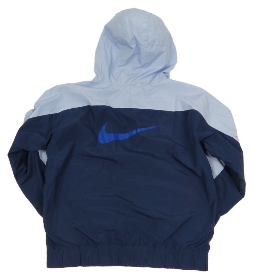 Světlemodro-tmavomodrá šušťáková športová bunda s logom a kapucňou Nike