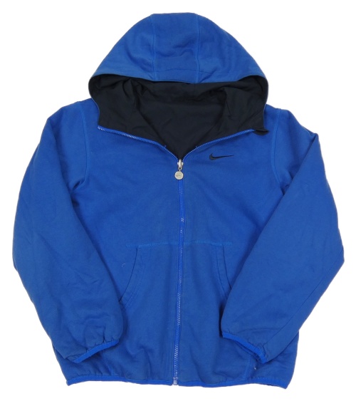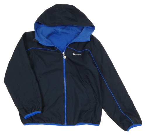 Tmavomodrá šušťáková jarná obojstranná bunda s logom a kapucňou Nike