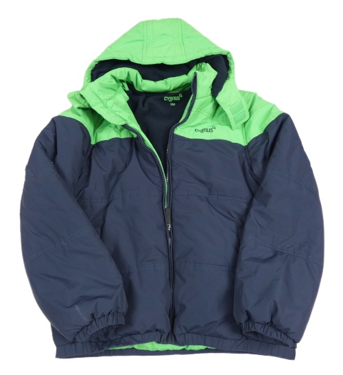 Tmavomodro-zelená šušťáková zimná bunda s kapucňou