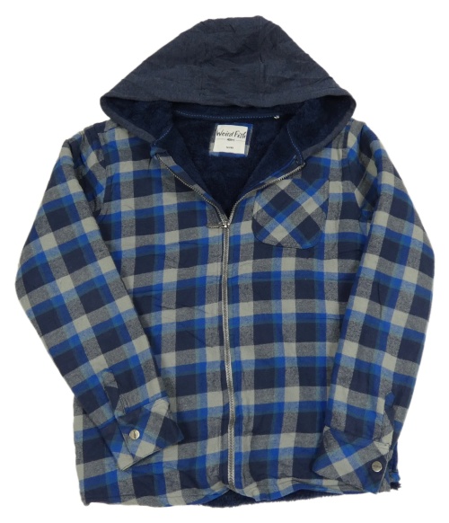 Modro-sivá kockovaná zateplená košeľová bunda s kapucňou