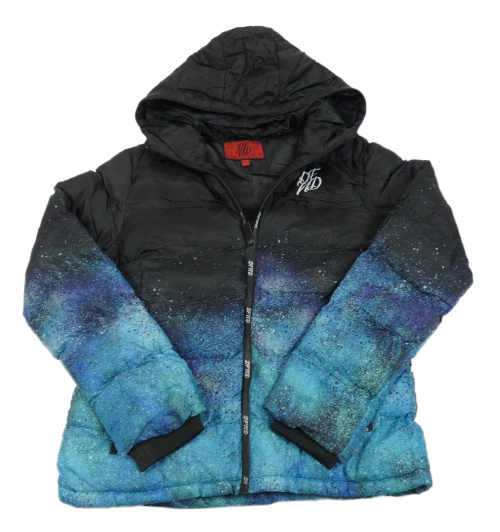Modro-čierna šušťáková prešívaná zimná bunda s kapucňou DFND