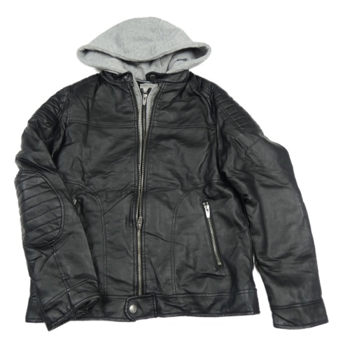Čierna koženková zateplená bunda s teplákovou kapucňou Zara