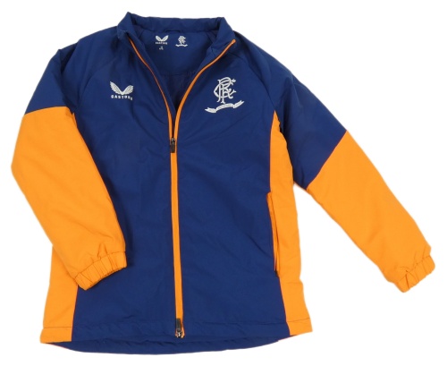 Modro-neónově oranžová šušťáková zimná bunda s potlačou