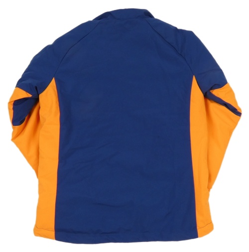 Modro-neónově oranžová šušťáková zimná bunda s potlačou