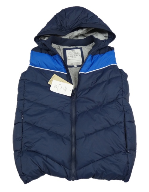 • Nové - tmavomodro-cobaltovoě modrá prešívaná šušťáková zateplená vesta s kapucňou M&S
